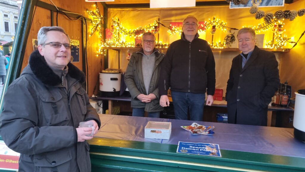 Das Jahr geht zu Ende. Anstoßen mit einem Glas Cremant in unserem Clublokal im Münsters! Die Weihnachtsfeier zusammen mit den Partnerinnen bietet Gelegenheit, auf einige Ereignisse des Jahres 2025 zurückzublicken. Üppige Einnahmen für gute Zwecke hat unser Glühweinstand auf dem Weihnachtsmarkt gebracht. Eine kleine Bilderschau, zusammengetragen vom Präsidenten Bodo Stoldt, würdigt das gemeinsame Engagement der Clubmitglieder.